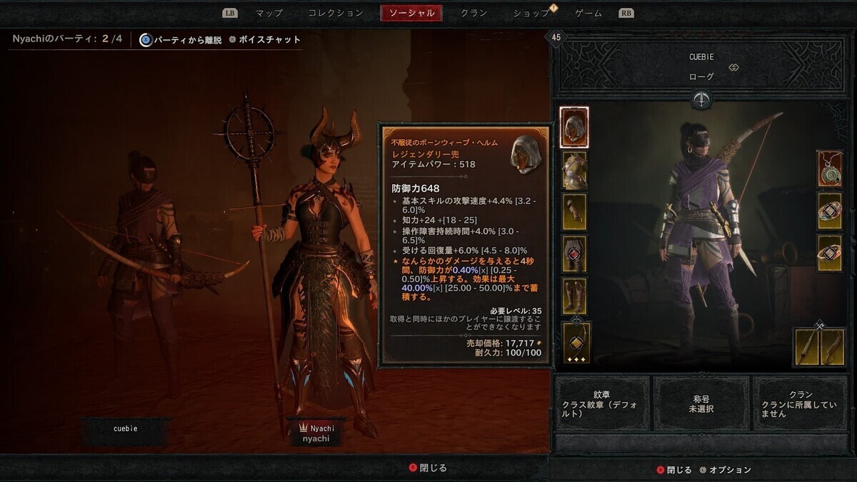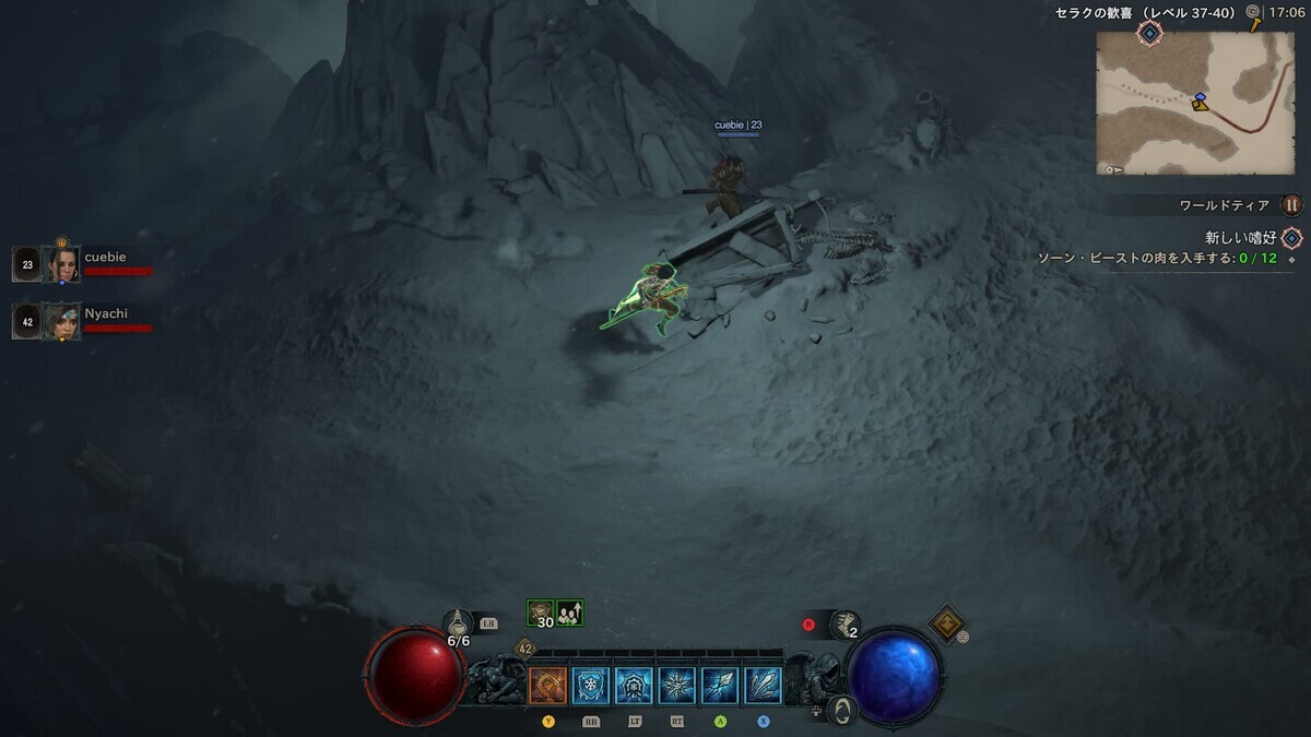 Diablo 4 は、クロスプラットフォームでマルチプレイできるので、PC と XBOX Series S でそれぞれログインし、遊び始めました。マルチプレイでは、パーティーリーダーに合わせてストーリーが進行します。ストーリーやシナリオに一緒に参加できますが、一度クリアしたメインクエストのクリア報酬はもらえません。